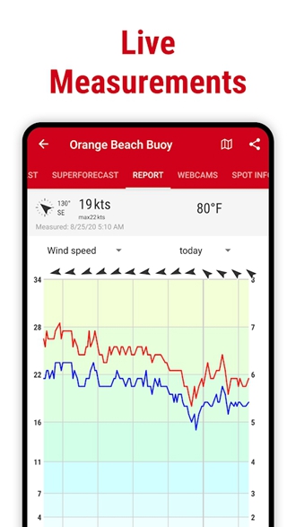 4.“潮汐表”以简洁的界面设计,直观地展示您当天每天在什么地方出现的所有雷雨和深层的风速情况,并将其与日落的云量表结合使用!您可以选择任何位置,并在地图上看到每颗浪高(例如雪球)。