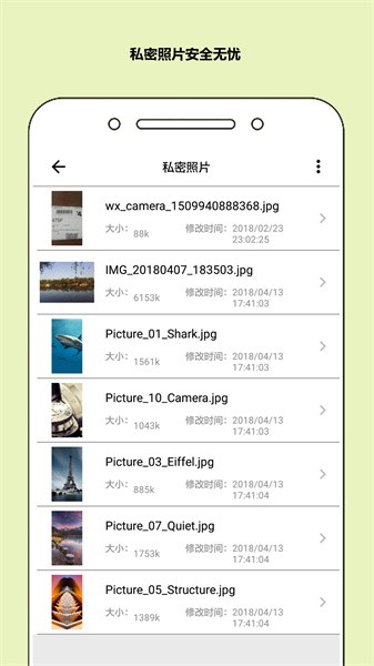 输入你想要的密码,通过加密算法为你的照片、视频、短信、电话号码加密保存,多重加密方式,给你一个放心的秘密保护