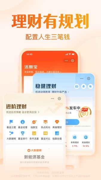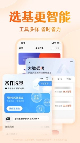 提供专业的基金经理团队,为您解读投资策略提供帮助。天天基金app是一款非常实用的手机基金管理应用,用户下载软件后可使用手机进行基金购买。软件中提供超多理财产品供您选择哦,有需要的用户快来下载吧。
