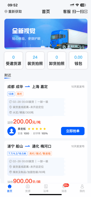 该软件可以帮助司机用户快速进行订单抢单。同时,在共运宝司机端平台中拥有海量的货源信息供大家选择使用!有需要的用户赶快来下载吧!