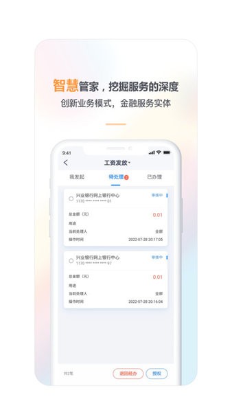 2、兴业管家企业版APP致力于为企业客户提供高品质、安全、智能、贴心等一站式企业经营管理方案。