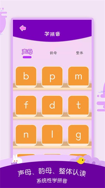 根据拼音学习表格,孩子可选择拼音学习拼音、写拼音、写拼音练习。