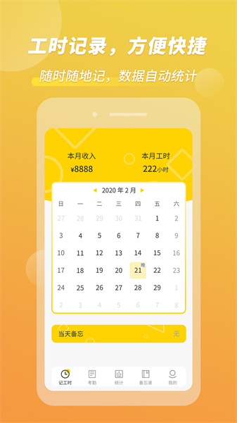 内置闹钟提醒功能,让你不会错过任何重要事情;还有日历模式,避免忘记重要事项;还可以按月结算,告别拖延;