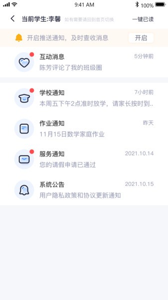 用户可以通过该功能向老师发送公告、请假等通知内容。