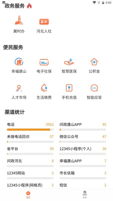 “唐山市12345”APP是唐山市***与广大市民互动交流的移动端应用。唐山区人民***工作人员可通过APP进行在线审批、查询个人办事状态、了解群众诉求、处理投诉建议、随时查看办事进度,并对工作情况进行评价。