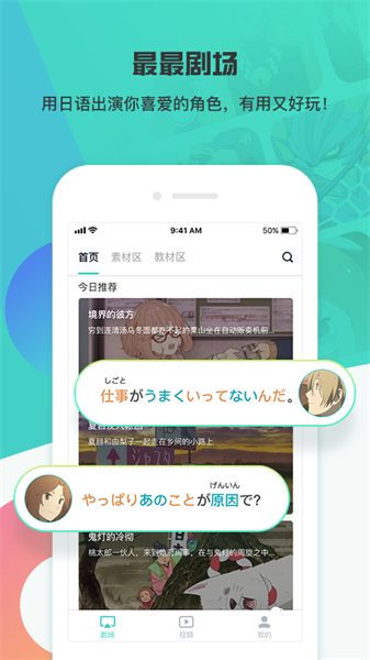 1、通过最最剧场的日语学习软件,用户可边玩游戏边学习日语,同时还能享受更多乐趣;