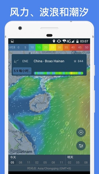 通过风向、温度、压力、云层以及更多天气元素对户外活动进行预测。