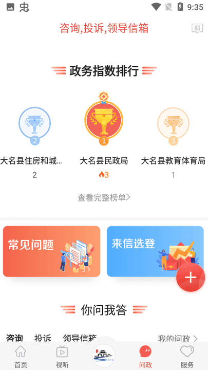 随时随地为您提供有问必答:政策法规解读、办事指南查询、在线咨询等。