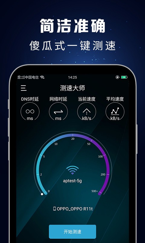 一键傻瓜式测速,下载速度、上传速度、网络延时图表化呈现,轻松完成网络测速;