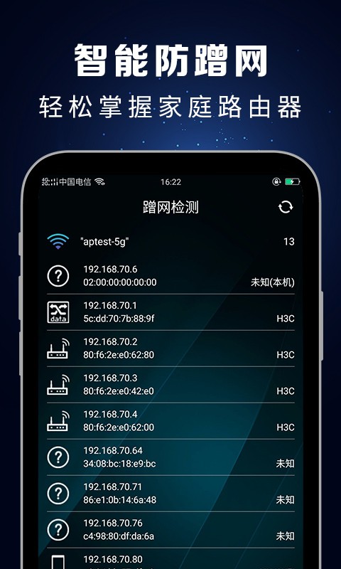 国内领先的网络诊断技术,检测Wi-Fi信号,检测移动网络的波动程度;