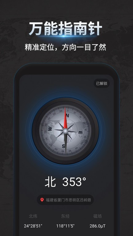 精准定位:万能指南针的定位系统非常精确,可以准确地定位到各个位置。