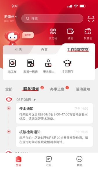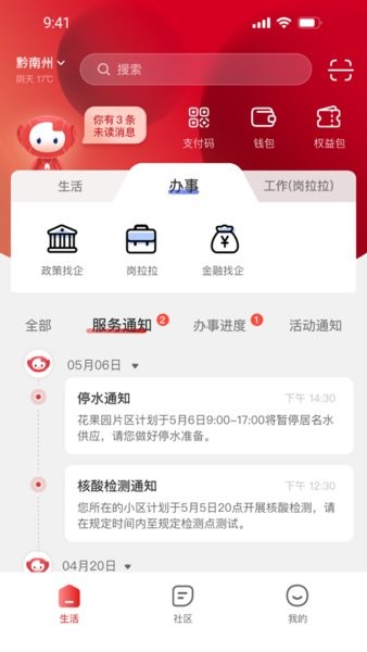 “政务服务”APP还提供了一系列生活类应用,如在线支付、查询社保账户信息、实时缴纳水电费、预约挂号、公积金等。