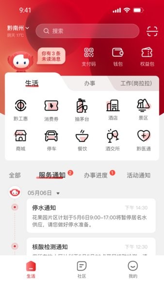 生活缴费:支持水电煤账单及燃气暖气的费用充值,让用户能够更加省心地享受智慧的生活体验。