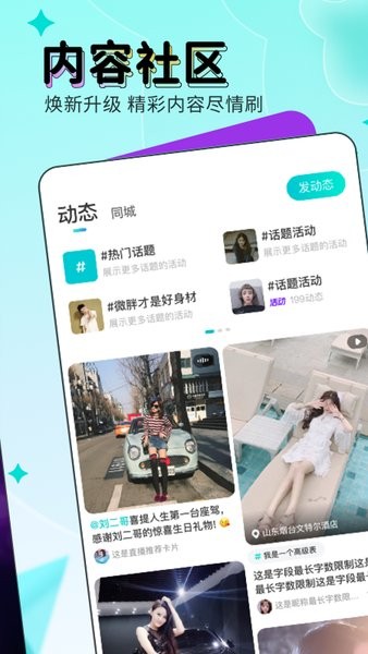 【附近动态】足不出户也能了解附近美女主播动态,约会脱口秀,更能找到你喜欢的人;
