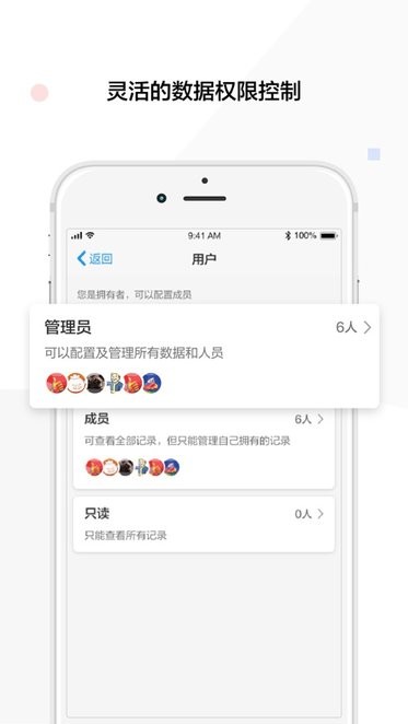 【团队成员列表】快速找到同事详情;创建团队并邀请成员加入;支持多级分级分配和协作。