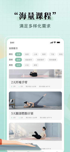 5、拥有多种不同的瑜伽内容,包含有减肥塑形、减压增肌等;