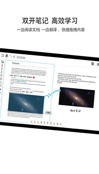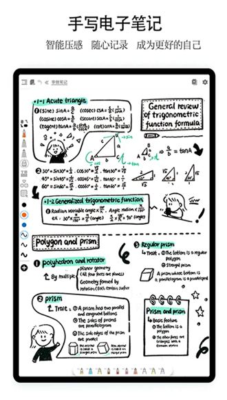 如果您需要书写各种类型的书写笔,您可以自由选择笔迹粗细、颜色和其他属性,使书写更加灵活。此外,该功能还允许您保存草稿纸、笔记截图以及其他重要文件格式(如DOCX、XLS)中的PDF文档至笔记本。