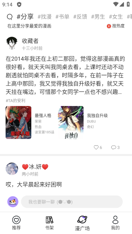 漫客多根据你的阅读历史和偏好智能推荐符合你口味的漫画书籍和服务。2、收藏夹管理: