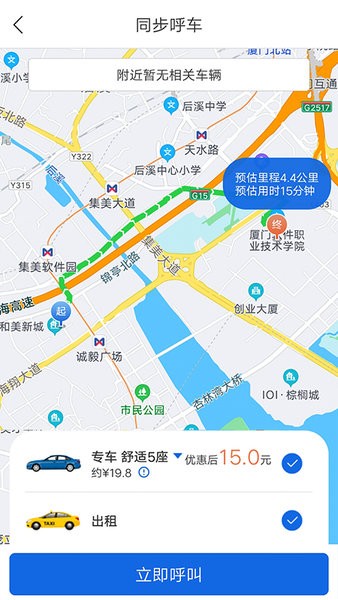 2、输入目的地后就可以快速寻找指定区域的出行线路,实现精准打车;