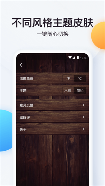 界面干净简约,操作方便易上手,用户可以通过手机随时随地打开它查看所在地区的天气状况,还可设置温度单位和温度提醒功能。