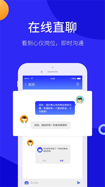 支持文字聊天功能,快速发送联系方式给求职者;