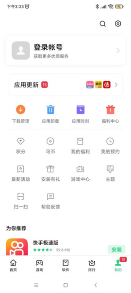 1、在本站下载安装一加应用商店app最新版本,打开进入软件首页点击右下角“我的”,然后登录自己的账号即可正常的使用;