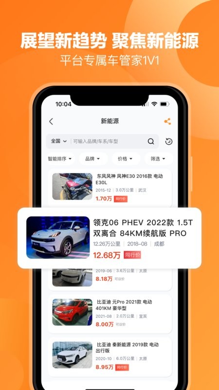 1、覆盖了全国各地的车源信息,无论是新车还是二手车,都能为你快速匹配;