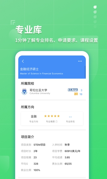 通过指南者留学APP内置的大数据算法支持一键生成详尽的留学报告单,无论是专业背景还是目标院校,都能帮你准确判断该院校是否适合你的留学需求。