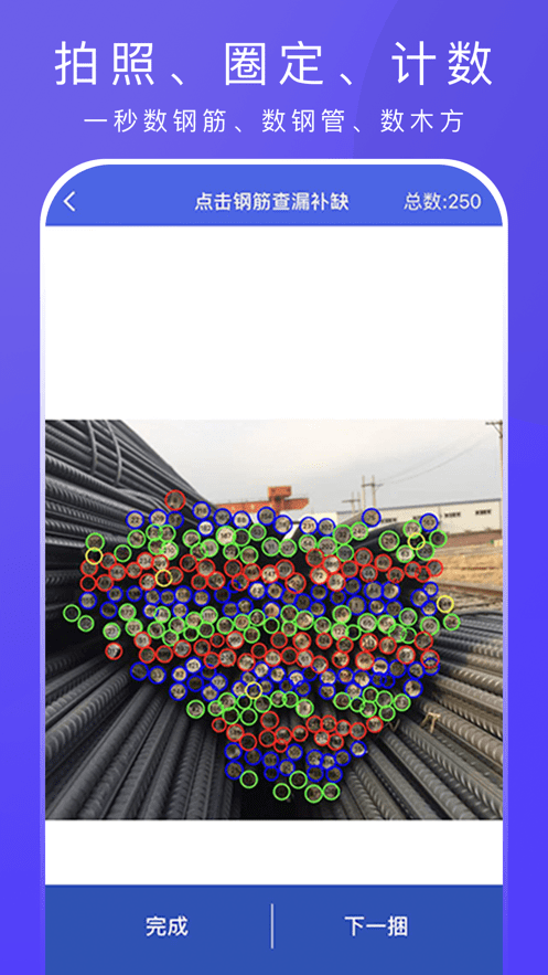 通过手机拍照,就可以快速生成数钢管数钢筋的数钢筋数钢筋的算数过程。