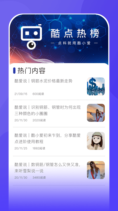 “酷爱点”是基于互联网技术,集数木方、数钢管、数钢管、计量等功能于一体,旨在提供一站式的数料服务。