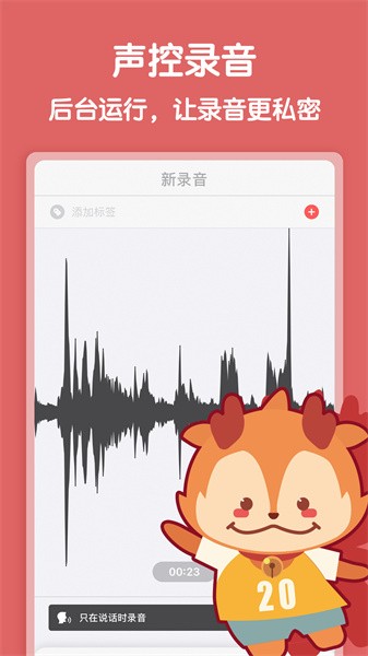 随声鹿是一款简单易用的手机录音工具,具有高品质的音效效果,能够将录音实时转写为文字并保存为音频文件。