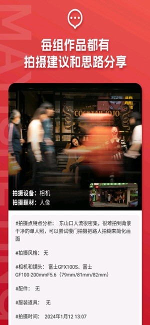 蚂蚁摄影app不仅提供了拍照攻略以及其他实用工具,还支持在线聊天和评论哦。