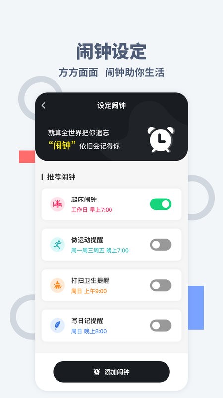 -还提供了计时闹钟功能,当您需要特定的时间提醒时,您可以准时醒来;