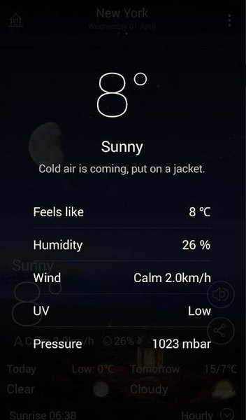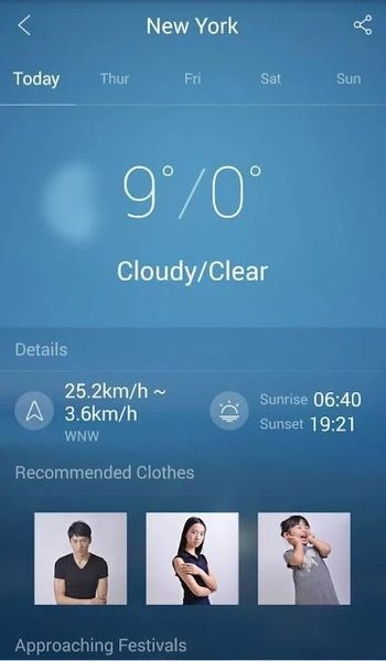 全球任意地点的天气状态栏信息,清晰了解当日天气。
