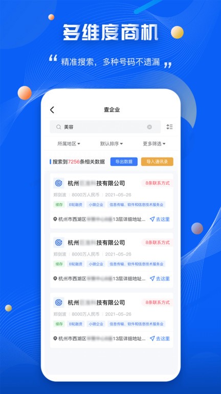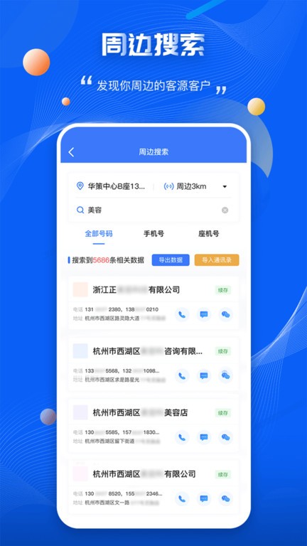 基于安卓的微商营销神器,支持一键导入本地联系人,快速获取客户信息。可将自己喜欢的联系人收藏起来,便于查找并保存;还能查看附近商家和商品资源,了解附近的人动态及销售情况。通过本软件您可以轻松找到潜在客户,让您能够迅速提升自己的生意人脉。