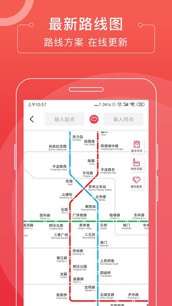 苏e行可以为苏州本地人打造的地铁出行软件,在这里你可以查询地铁路线以及站点信息。支持在线扫码过闸服务,只要有手机就能刷码进出站,而且还能进行充值哦,让你乘车的时候不用排队买票了,同时这里还为大家提供了多种语言选择哟,欢迎有需要的朋友下载使用!
