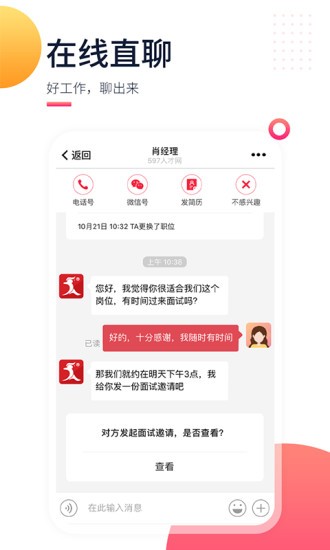 遇到合适的人后,如果有人投递简历时,会立即通知你,极大地提高求职成功率,大大提高了招聘效率和准确性。