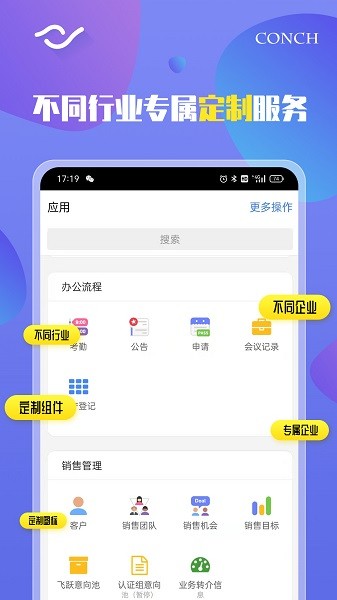 灵活配置各类办公应用或工具,以适应不同规模企业的办公需求,帮助企业更好地组织业务和协作。