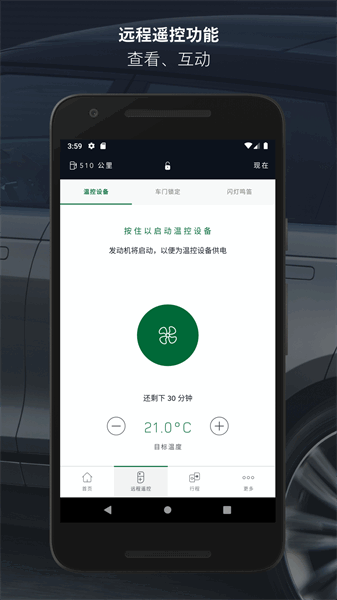 该软件可以为用户提供智能的操控系统和功能。通过这款软件可以帮助用户轻松地控制自己的路虎车子。这款软件提供了多种实用的功能,比如查看车辆的状态、设置驾驶行为等等。用户可以通过这款软件随时随地的管理自己的车辆信息,包括车辆的位置、状态等,让用户了解自己的车辆状况。同时,软件还提供了详细的导航服务,方便用户进行路线规划与导航。路虎智能驭领远程遥控app还能实时监测车辆的运行情况,确保行驶安全,保障用户的出行安全。