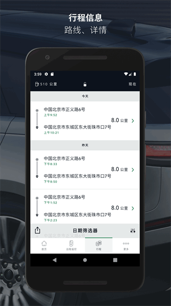 5、自动记录你每一次的行驶里程数据,以便您快速查询;