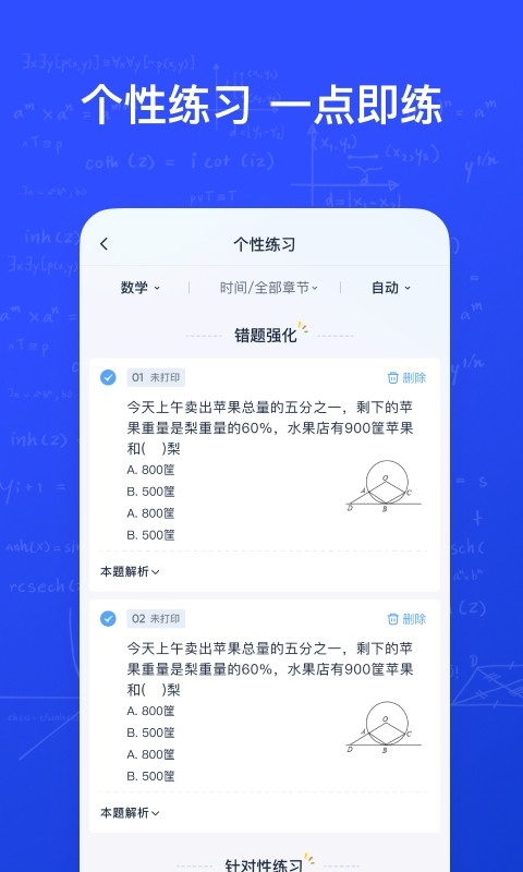 --内置丰富的学习资料库:提供海量的学习资料,包括数学、语文、物理、化学等,帮助用户全面提升自己的数学水平。