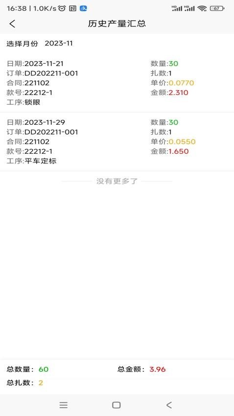 用手机就能对自己的生产清单一目了然(记工时、记工资、记加班、记月收入)、自动计算总利润,方便快捷。