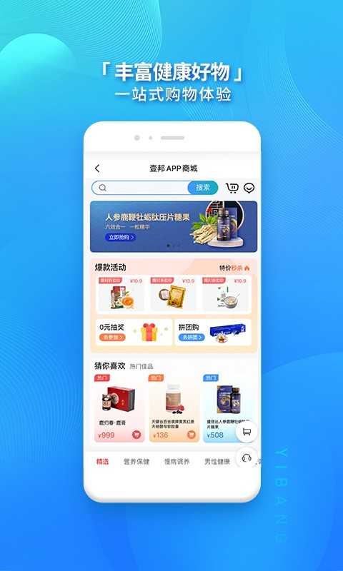 健康商城一站式购药:支持线上支付,药品、保健品、食品、日用品、母婴用品等,一应俱全。