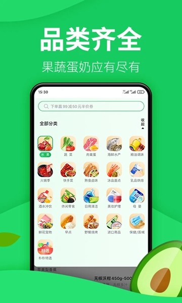 1、品类繁多:蔬菜水果肉禽蛋奶酒水乳饮粮油等