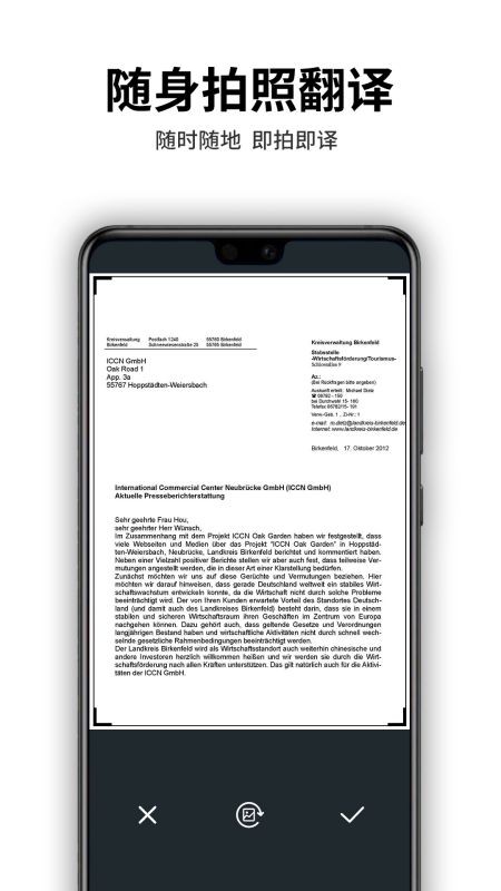 -即时拍摄翻译:内置强大的OCR摄像头取词和拍照翻译功能,一拍即译,无需手动输入便可轻松实现文本识别与翻译。