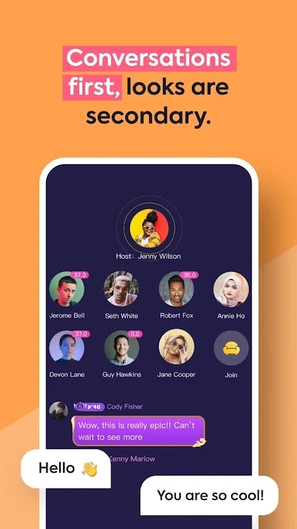 1、支持发送图片文字表情包信息非常丰富多彩。2、海量高质量的小哥哥、小姐姐任性挑选喜欢声音就可加入房间。