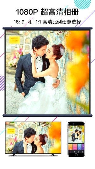 多种风格的画布比例:正方形/圆角/渐变色,调整照片色彩。