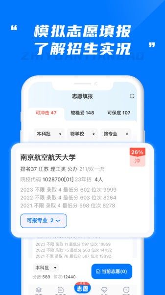 这款软件可以帮助高考考生在志愿填报上做出更加专业的参考和分析,在这里你可以根据你的分数为你进行估分、录取等一系列操作哦,感兴趣的用户快来下载吧。