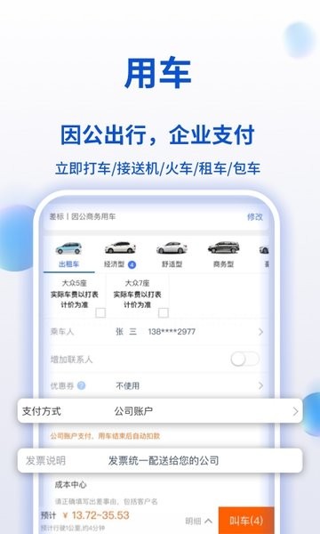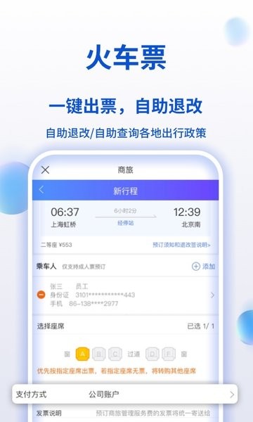 该软件为企业客户提供差旅出行、差旅管控、行程预订、机票、酒店、火车票、用车等一站式解决方案。软件内拥有多种多样的航班和火车票资源供用户进行查询了解使用,并且还能够让用户在外出的时候节省很多时间。