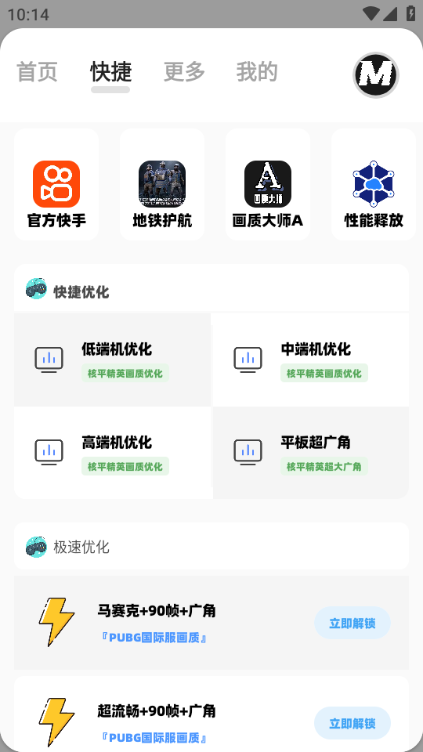 【画质优化】支持自定义画质选项卡,分别为:最佳、最极限、最高效(HDR高清)及120hz/超高/写实等多项特效配置文件。2、【代码库专区】这里提供丰富的代码库资源供您下载使用,并且还拥有非常详细的代码分类列表服务哟。3、【安全绿色】软件采用全新代码库设计,安全性十足,不会出现泄露风险,可放心大胆的使用。4、【其他实用功能】里面包含了一些常用的游戏快捷方式辅助功能,例如:准星助手、灵敏度检测等,这些都可以通过软件快速解决。5、【兼容性强】画品质MMXPro软件适配市面上主流安卓机型,无论是华为还是小米都可以用这款软件完成很多数据上的提升呢。